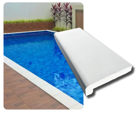 Piso Atérmico e Bordas para Piscina que mantêm a temperatura agradável mesmo sob o sol forte e possuem superfície antiderrapante, oferecendo tranquilidade, durabilidade e um toque sofisticado à sua área de lazer.