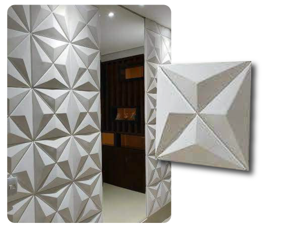 Revestimentos com formas e relevos que criam profundidade e movimento nas paredes. Uma linha que une estética contemporânea com fácil aplicação e alta durabilidade.